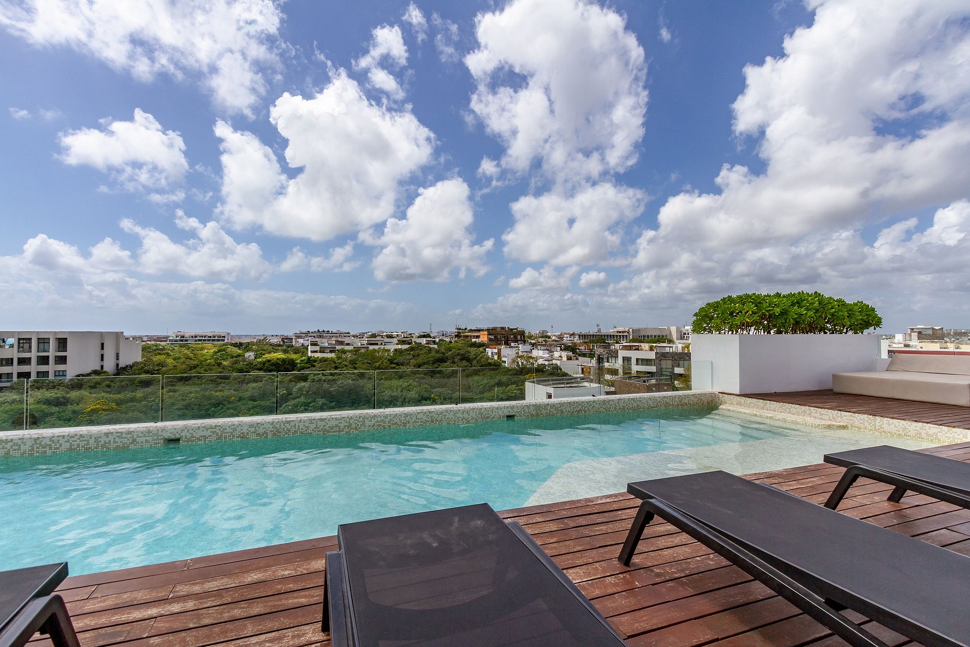* El complejo cuenta con amenidades como alberca en la azotea con vista al Caribe y gimnasio.